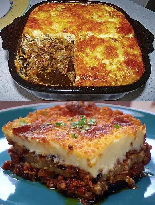 Zutaten 550 g Hackfleisch, bevorzugt Lamm 2 Zwiebeln, fein gehackt 5 Knoblauchzehen, fein gehackt 1 gr. Dose Tomaten, geschälte ohne Saft 500 g Kartoffeln,geschält, in 2 mm feine Scheiben geschnitten 500 g Auberginen, vom Stielansatz befreit, in 2 mm feine Scheiben geschnitten 1 Lorbeerblatt ¼ TL Zimt Salz und Pfeffer 4 Eier 50 g Butter … Lire plus